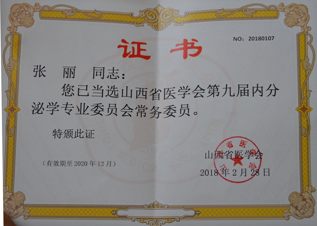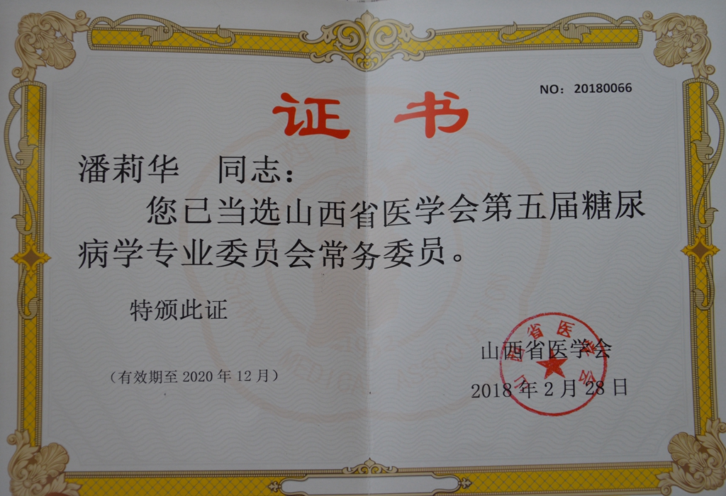 我院潘莉华连任省糖尿病学会常委、张丽连任省内分泌学会常委
