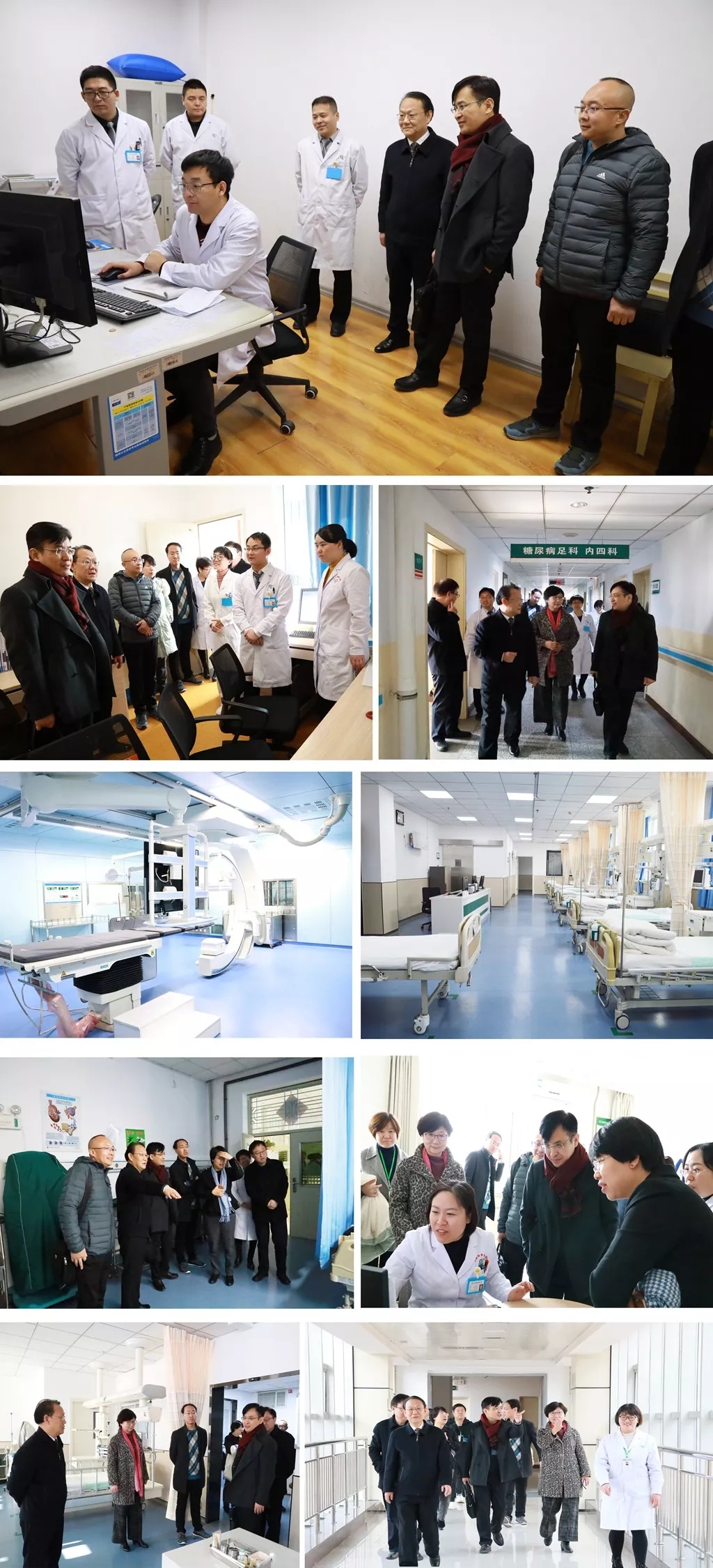 安健副院长一行四人不顾舟车劳顿,先后对我院心血管重症监护室(CCU)、导管室、核医学科、糖尿病心血管科、糖尿病神经内科、糖尿病足病科、糖尿病眼科、检验科和精准医学实验室进行了实地参观。