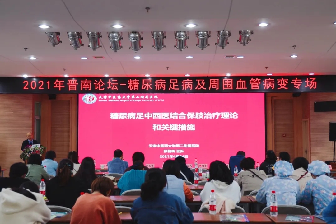 ▲天津中医药大学附属二院中医外科张朝晖教授作《糖尿病足中西医结合保肢治疗理论和关键措施》专题讲座
