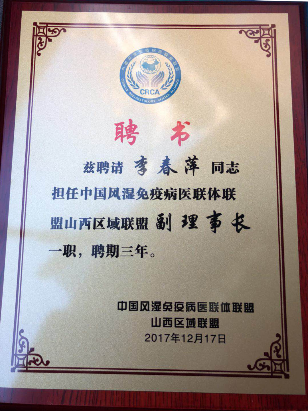 运城同德医院荣获中国风湿免疫病医联体联盟山西区域联盟成员单位,风湿免疫科主任李春萍当选为副理事长