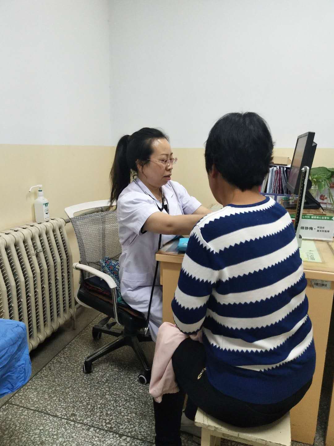 看完第一位病人,诊室又来了两拨人,师主任一一招呼大家坐下,像招待家里来的亲人一样热情。当了解到乡下来的一位老人需做仪器检查又不知路径时,师主任给在座的病人们说:“大家稍等一会儿,我帮这位老人安置一下”。随即,扶着老人离开诊室。望着师主任的背影,待诊的病人们纷纷议论说:这个医生好!她对病人热心、耐心、有爱心。这个好医生我们是面对面地见到了,感悟到了。