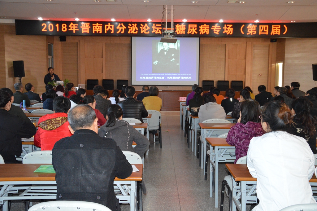 本次会议特邀请北京大学医学部内分泌科袁振芳教授、中国海军总医院内分泌科郭启煜主任、山西医科大学第二医院内分泌科李艳娇博士、广西壮族自治区人民医院内分泌代谢科农月稠护士长、运城同德医院院长路文盛、运城同德医院首席主任医师潘莉华、运城同德医院糖尿病足科主任张立新等7名省内外知名内分泌学专家进行了精彩的学术讲座。主要内容有:肥胖治疗新进展、口服降糖药物的发展历程与临床定位、孕期糖尿病从基础到临床、糖尿病足创面治疗护理规范、PCOS从基础到临床、新版中国糖尿病指南修改、经皮氧分压精确评估糖尿病外周血管病变等。