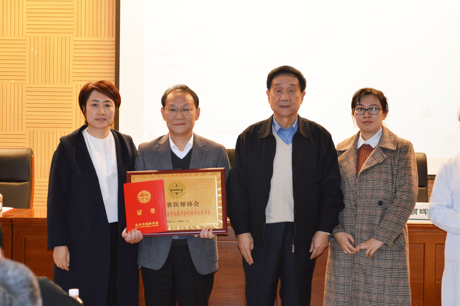 ▲ 王银全会长、张丽晖主任给当选的副主任委员、常委颁授证书