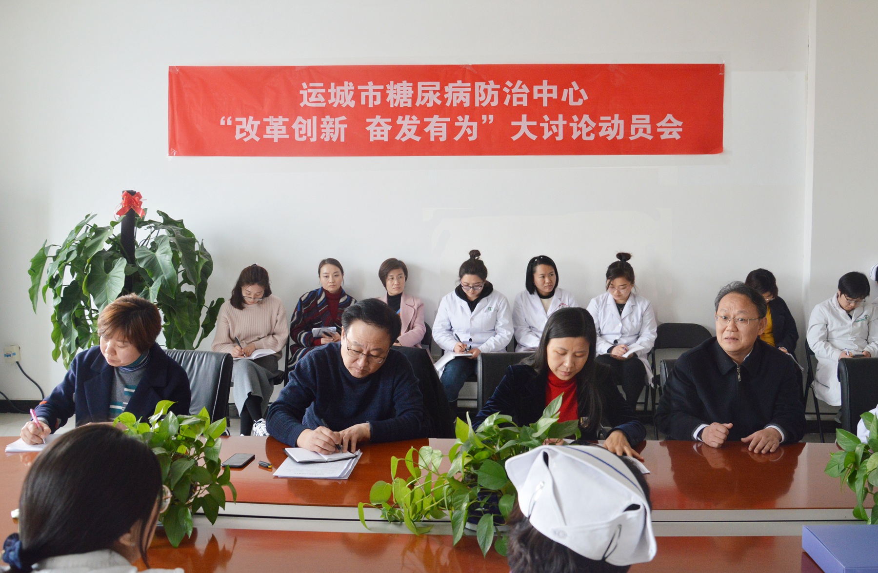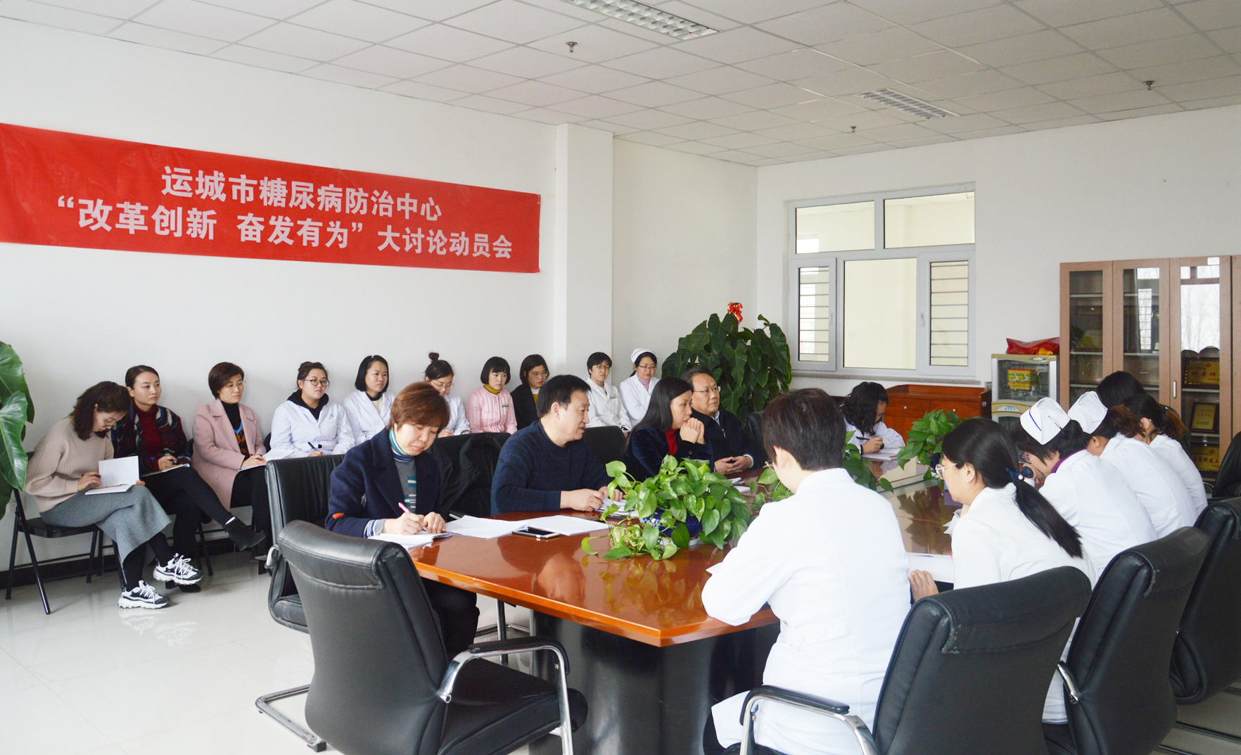 2月27日下午,运城市糖尿病防治中心召开“改革创新、奋发有为”大讨论动员部署会。糖防中心副主任师布朵主持会议,全体党员、中层干部共计50人参加会议。