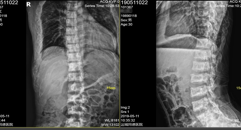 ▼ 胸腰椎正侧位片: