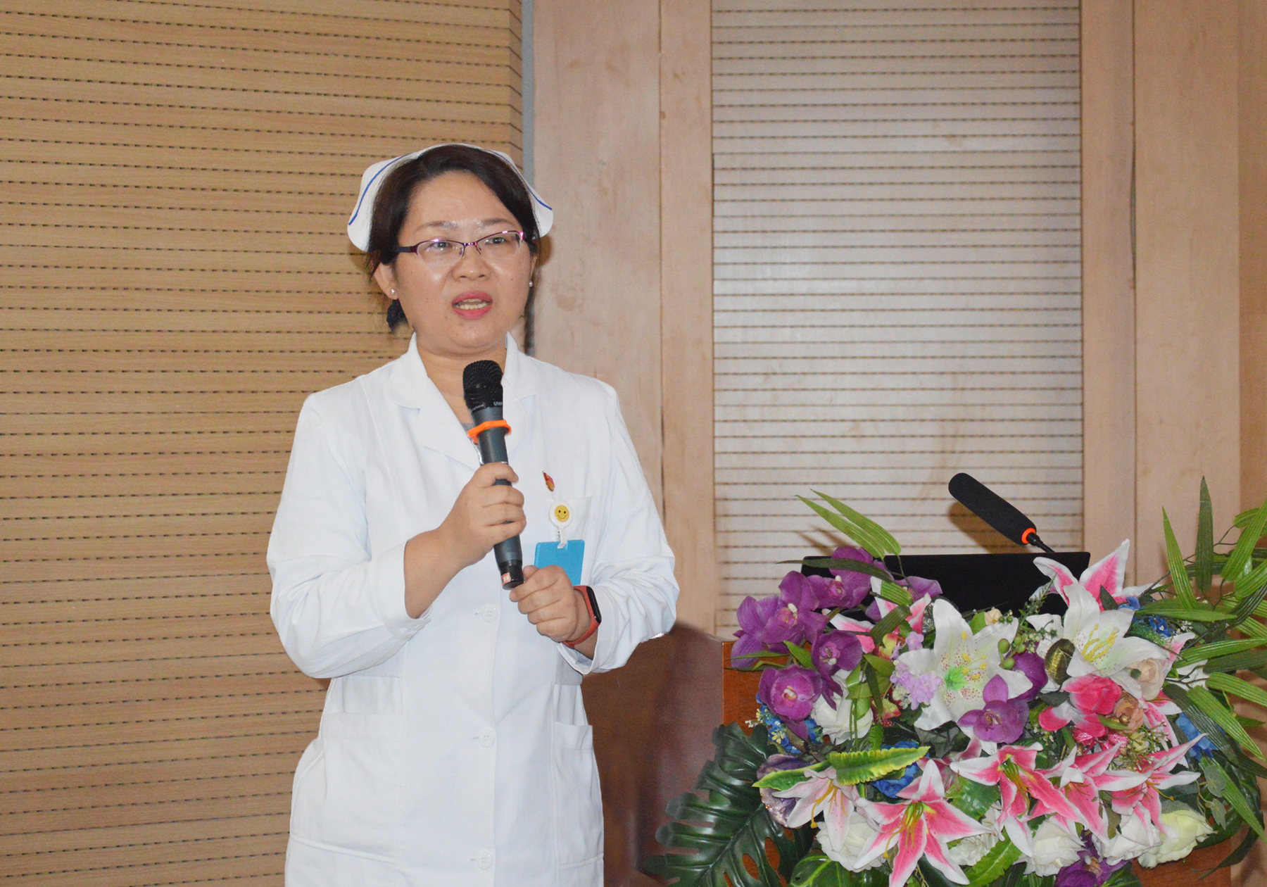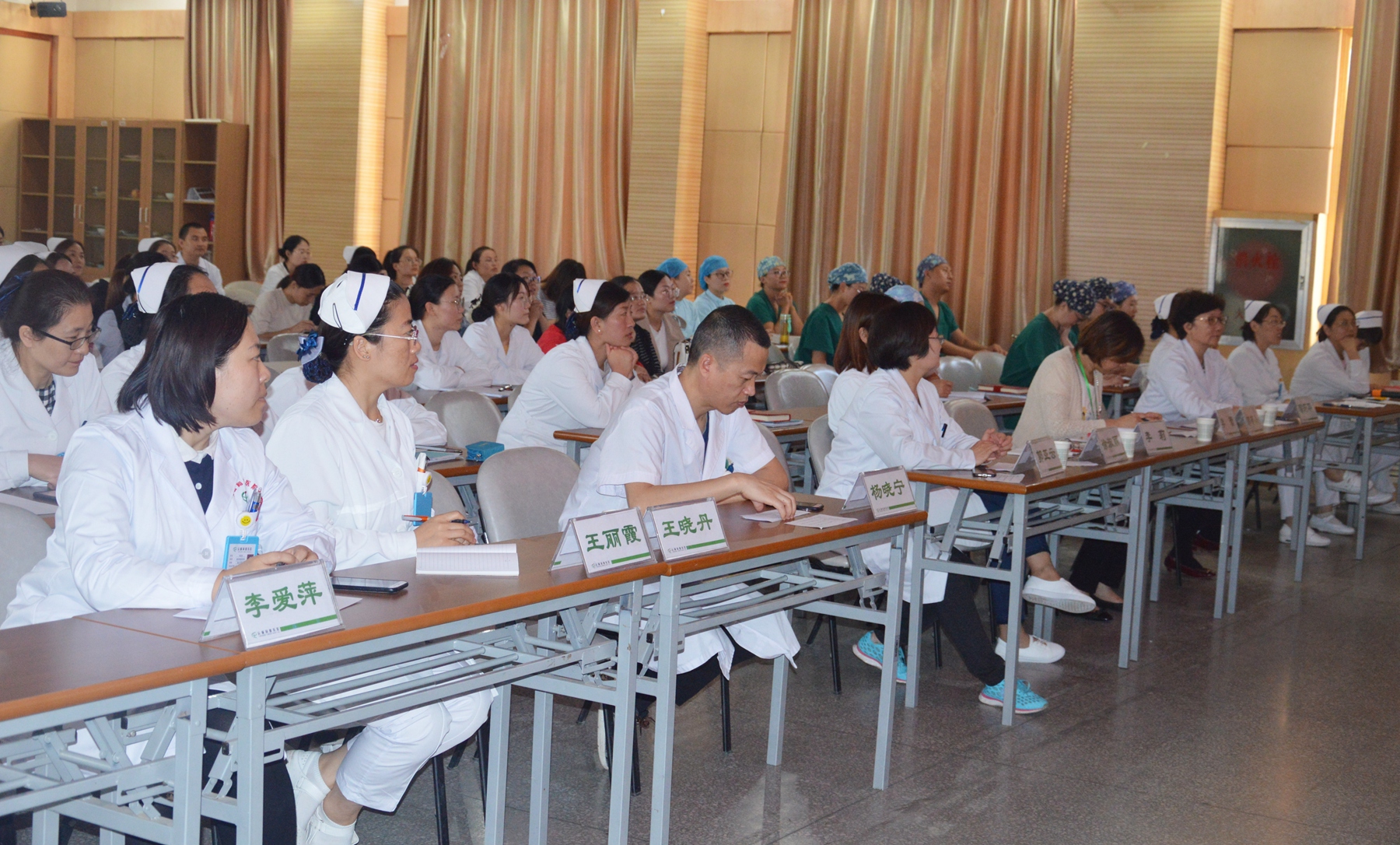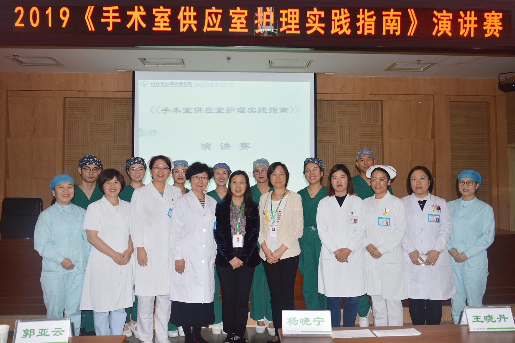 为提高我院手术室、供应室护士的专科实践操作能力,为患者提供优质的护理服务,9月20日,运城同德医院举办了首届手术室、供应室护理实践指南授课比赛活动。本次演讲赛受到院领导的高度重视,主管院长潘莉华、常务副院长师布朵、副院长李蕾出席并讲话,护理部主任李莉,院感科主任徐淑丽,麻醉手术科主任郭亚云、骨科医师杨晓宁共七人担任评委。眼科主任李爱萍,综合二科护士长王丽霞担任点评嘉宾,全院150余名护理人员观摩了比赛。