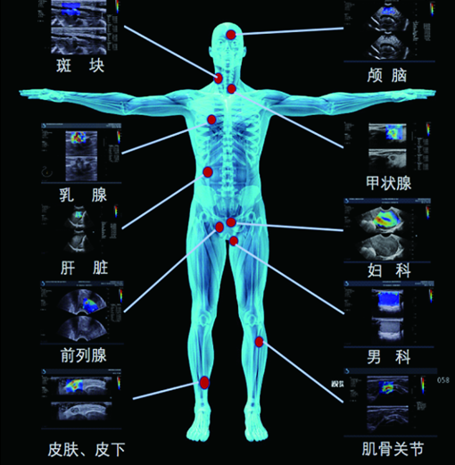 E-成像实时剪切波弹性成像技术具有广泛的应用范围,能够对甲状腺、肝脏、乳腺、胰腺、胆囊、淋巴结、肌肉、肌腱、血管、神经、子宫、卵巢等器官进行弹性定量分析。