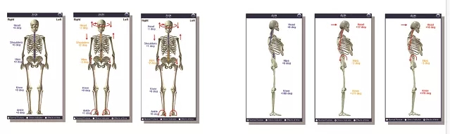 1、体态/身姿评测(颈部、肩部、脊柱、骨盆、膝关节、踝关节等)